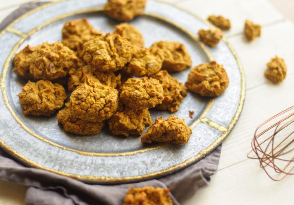 Předehřejte si troubu na 175 °C, připravte si plech a vymažte tukem, nebo vyložte pečícím papírem Do misky dejte dýňové pyré, vejce, kokosový olej a med, pokud se rozhodnete přisladit a ručním mixérem rozmixujte na hladkou kaši. Poté přidejte mleté mandle, koření a znovu promíchejte. Nakonec už jen opatrně vmíchejte nasekané pekanové ořechy a rozinky, pokud budete používat. Těsto je stále celkem mokré, takže na tvarování bochánků použijte lžíci a prostě lžicí těsto pokládejte na připravený plech, nechte mezi jednotlivými bochánky místo. Já jsem je dělala asi 3 cm v průměru, ale můžete udělat menší i větší. Dejte do trouby péct na 18-20 minut. Nechte vychladnout, jsou totiž docela křehké. Skladujete v lednici