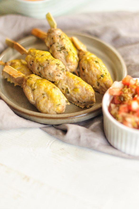 Stella ráda vymýšlí nové věci a nejčastěji když si prohlíží kuchařky mi hlásí co bych měla uvařit. A tohle někde taky viděla na fotce a připomnělo jí to její oblíbené satay ze Singapuru, nebo maso na špejli z Itálie, na které si ani jedna nemůžeme vzpomenout, jak se jmenuje.