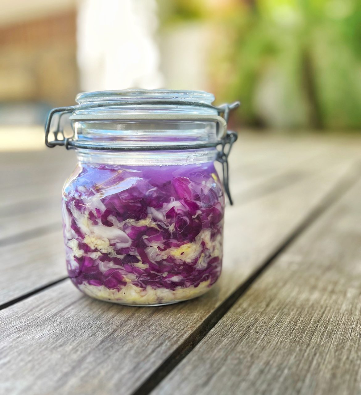 Kvalitní zelí bude mít vždy dostatek šťávy, takže nejprve bych zkusila znovu několik minut se zelím pracovat, jak jsem psala, je to opravdu těžká práce, ale pokud zelí nebude dostatečně zpracované, ferment se nepovede. Pokud ani poté nebudete mít dostatek šťávy, můžete láhev dolít čistou vodou. U červeného zelí se tento problém může objevit častěji, že z nej vymačkáte málo šťávy, tak klidně dolijte vodou. Pokud máte doma šťávu z kysaného zelí (recept zde) tak můžete případně místo vody použít i tuto šťávu na doplnění tekutiny.